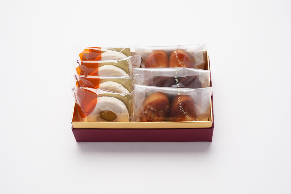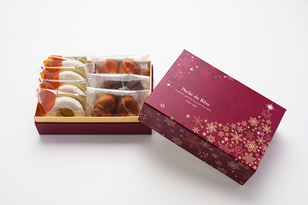 当店オリジナルデザインの冬期限定パッケージに人気No.1和三盆リングサブレと3種類のフリアン(フィナンシエ)を合計7つ入れたギフトです。