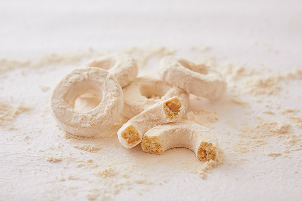 ・和三盆リングサブレ:小麦粉、バター、アーモンド、マカダミアナッツ、砂糖、和三盆糖、コーンスターチ、塩